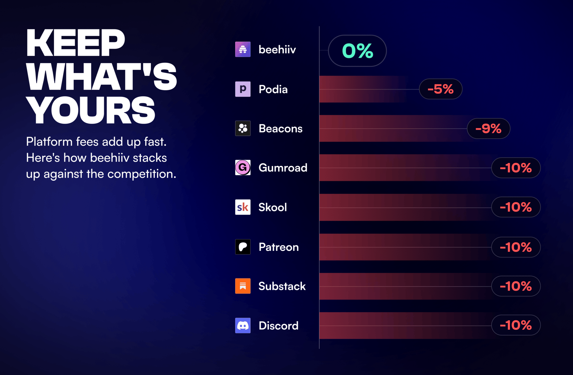 And beehiiv is one of the few platforms in the industry that charge 0% platform fees 👀.