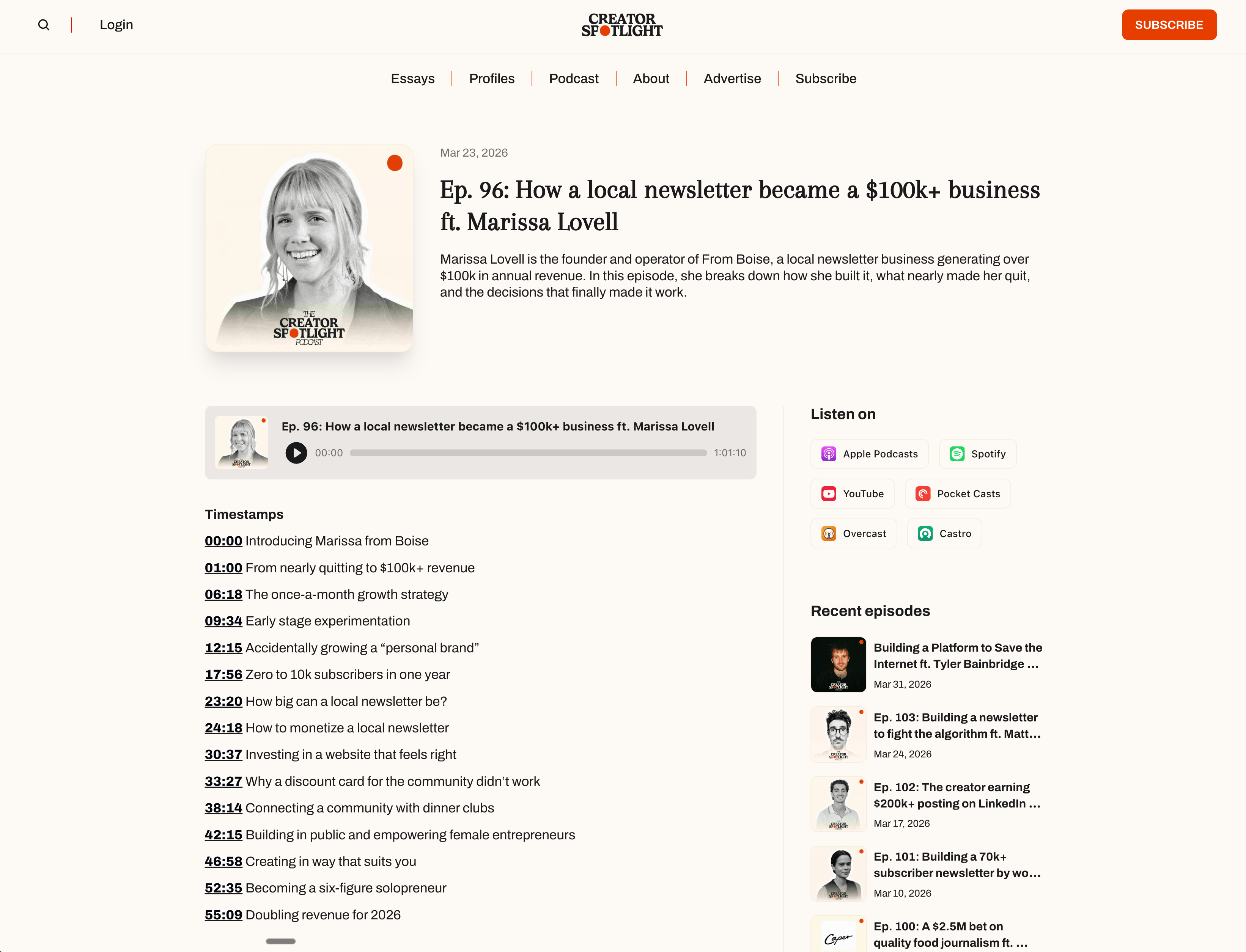 Since your podcast is fully integrated with your beehiiv website, each episode has its own SEO-optimized webpage to drive traffic and capture subscribers.